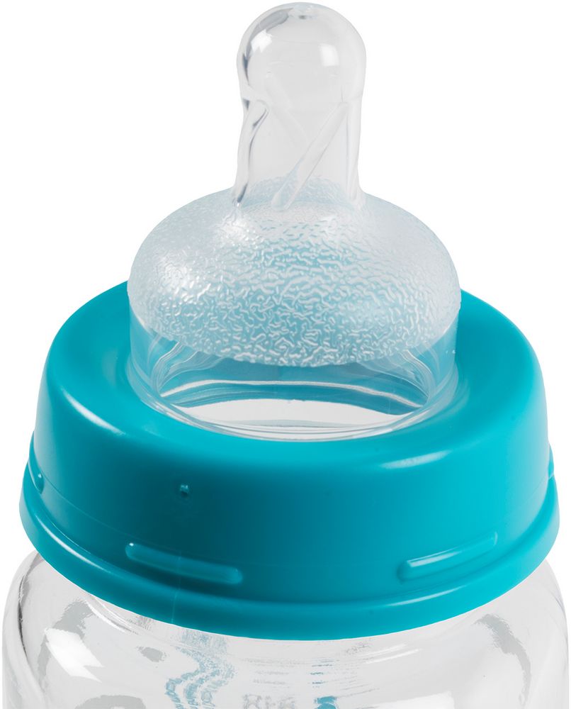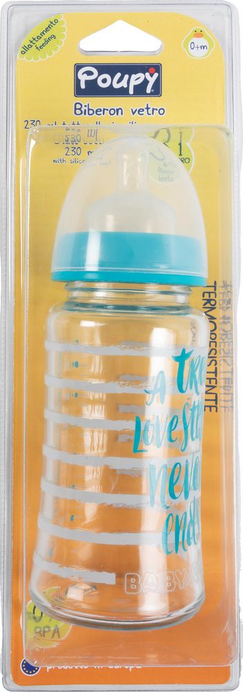 - Biberon Poupy in vetro puro e naturale di colore azzurro da 230 ml, ideale per neonati