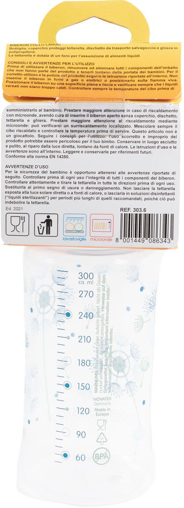 - Con tettarella in silicone, coperchio proteggi tettarella e dischetto trasporto salvagoccia
