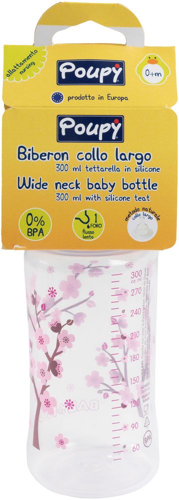 Il Biberon per neonati Poupy con collo largo decorato da 300 ml è fantastico per i più piccoli.