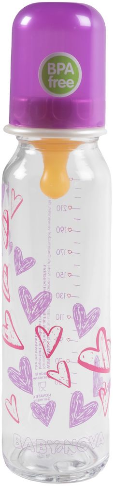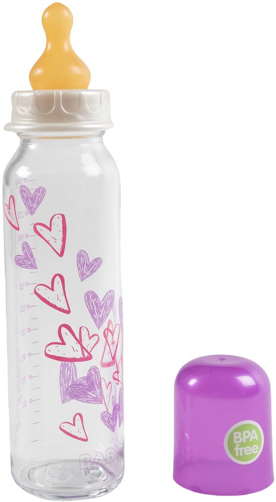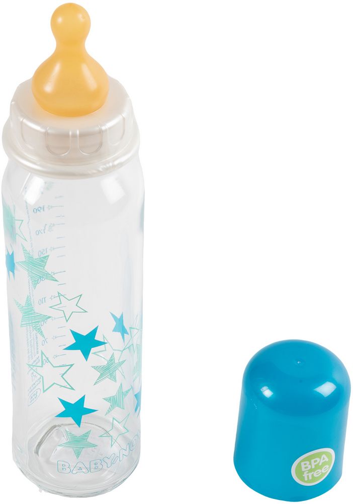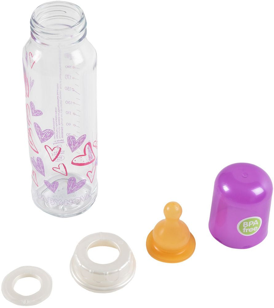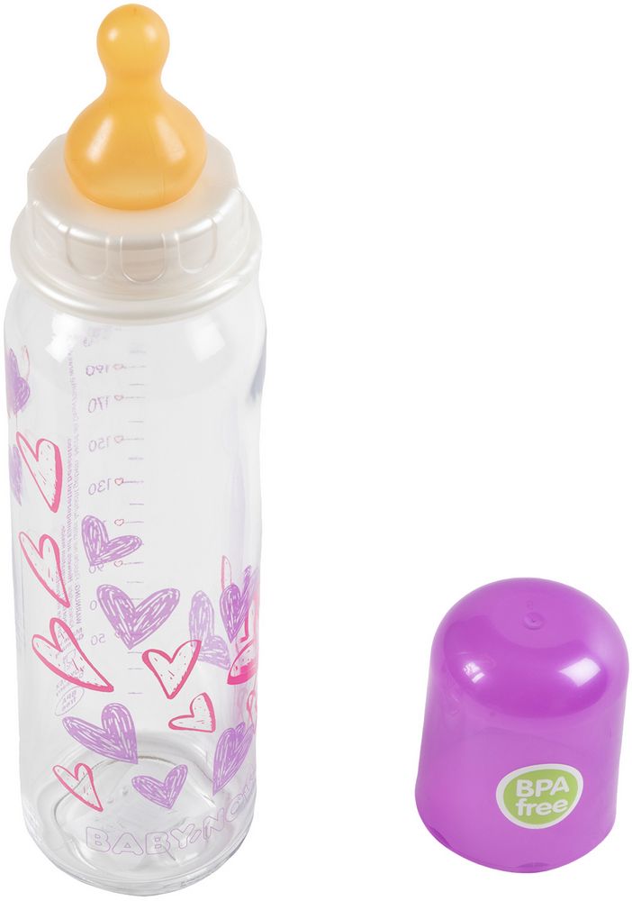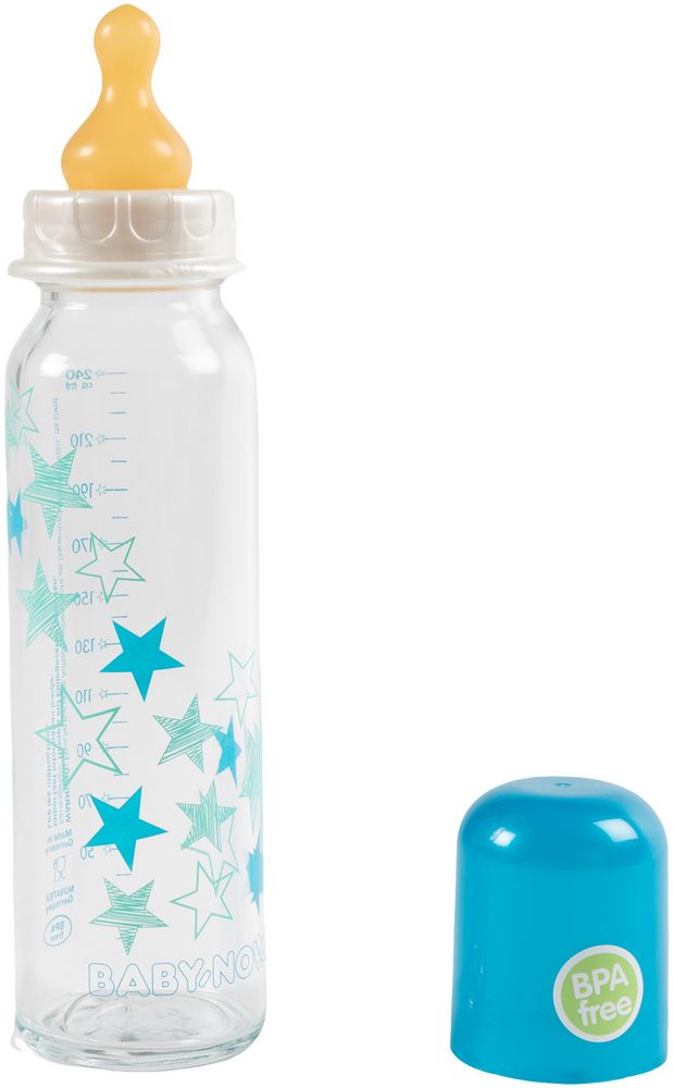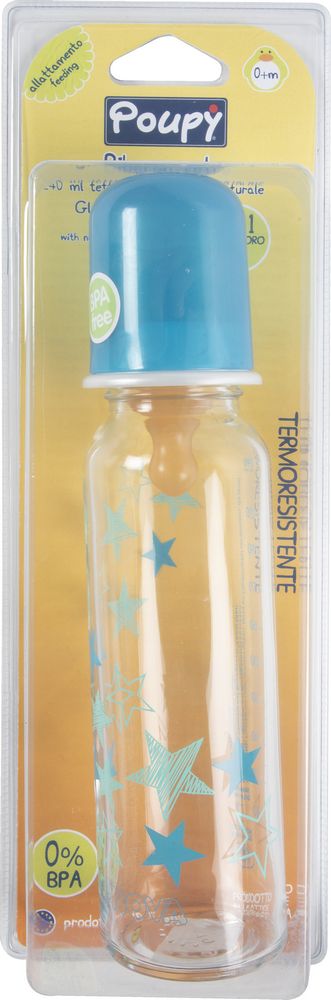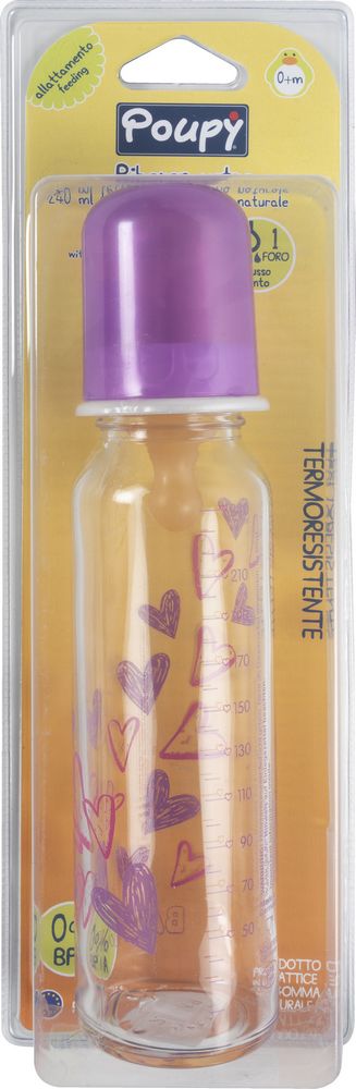 Biberon in vetro Poupy per neonati da 240 ML con tettarella in gomma naturale e coperchio proteggi tettarella.