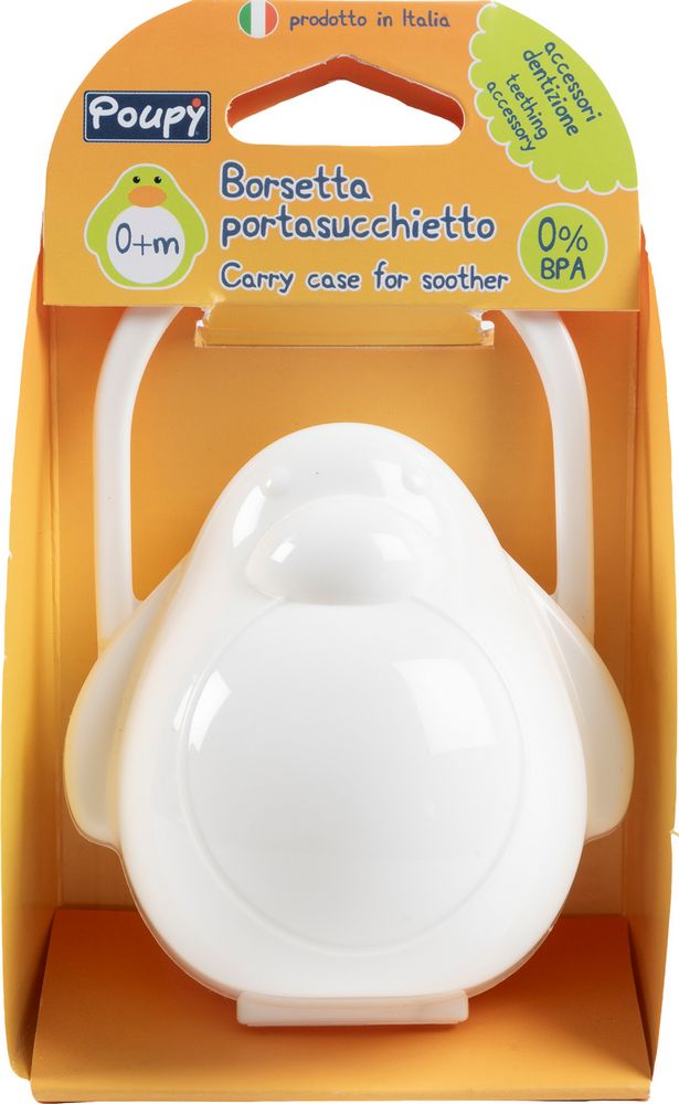La Borsettina Portasucchietto Pinguino permette di mantenere il succhietto pulito e protetto anche all'aperto.