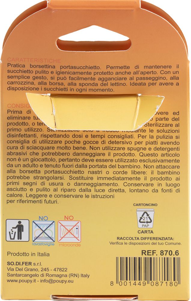 - Mantiene il succhiotto pulito e igienicamente protetto all'aperto