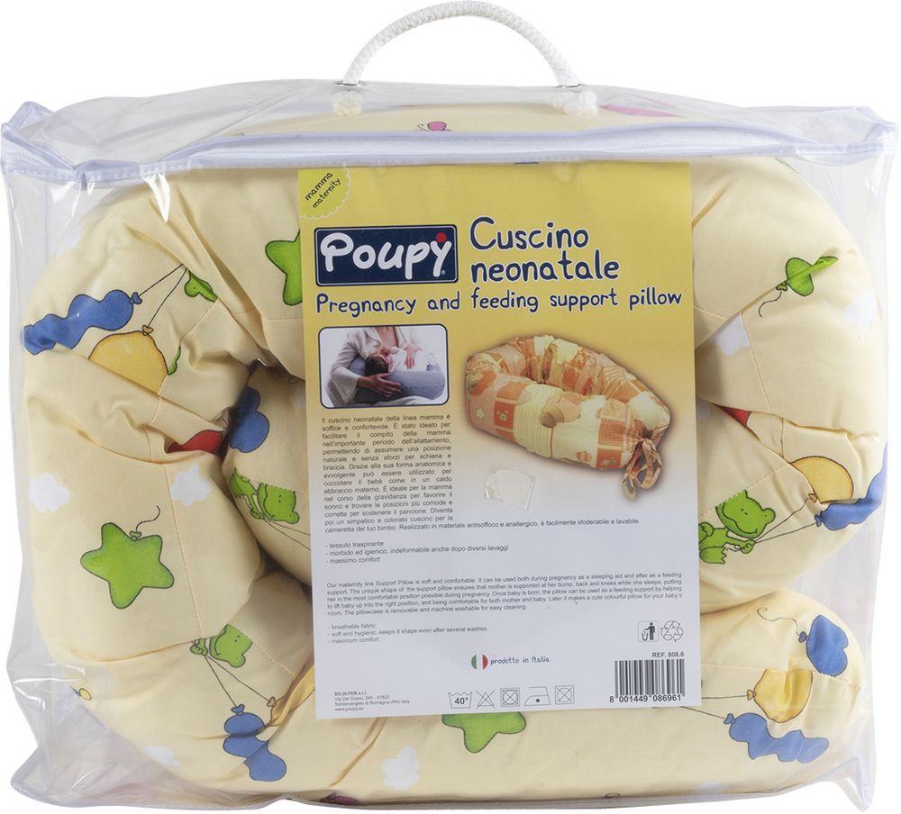 Il cuscino allattamento ha una forma anatomica e avvolgente che ti permette di coccolare tuo figlio in un comodo abbraccio materno.