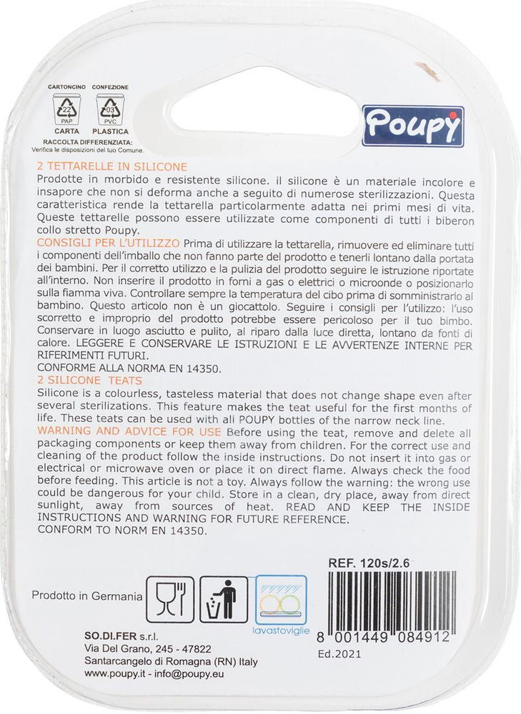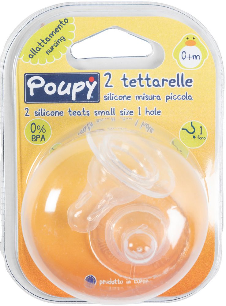 La nuova Tettarella in Silicone è adatta a tutti i neonati che utilizzano i biberon Poupy a collo stretto.